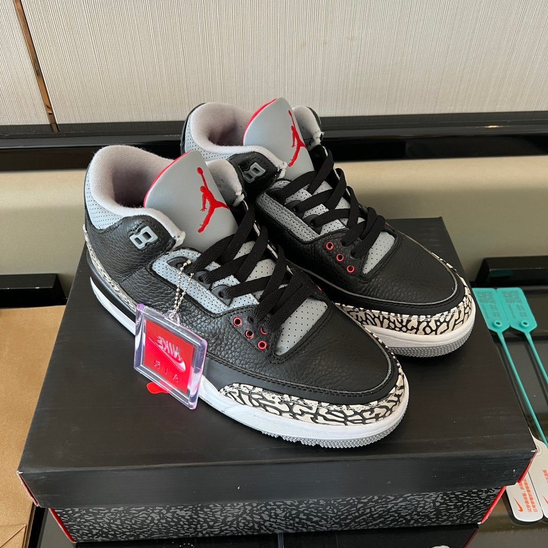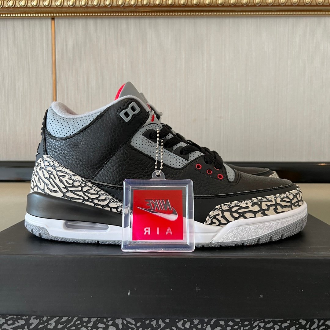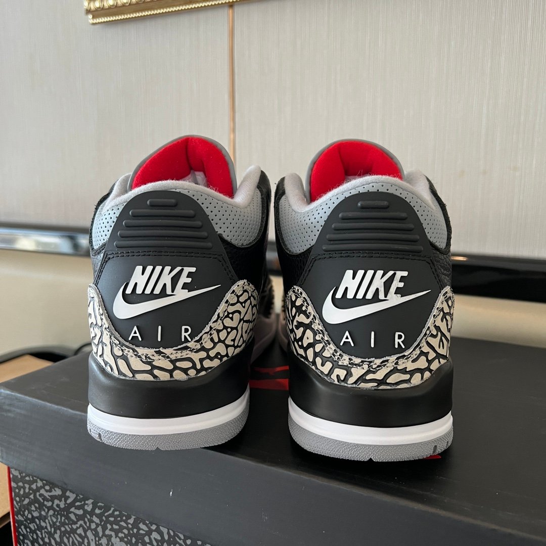 The Air Jordan 3 black cement brings back a legendary look with premium craftsmanship. This pair is about heritage and quality.