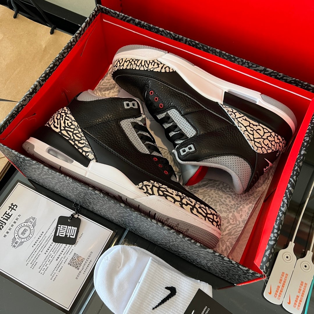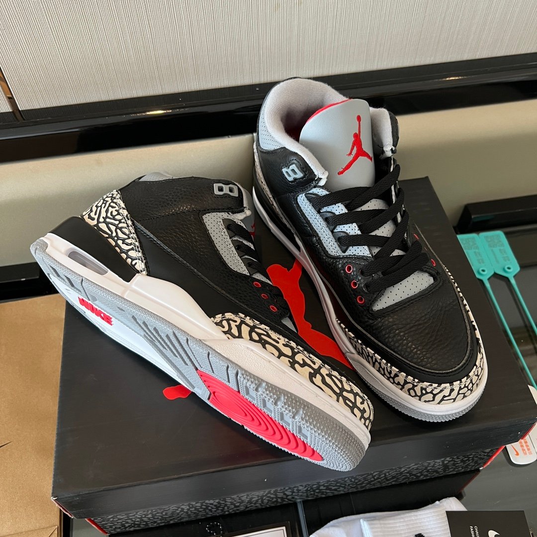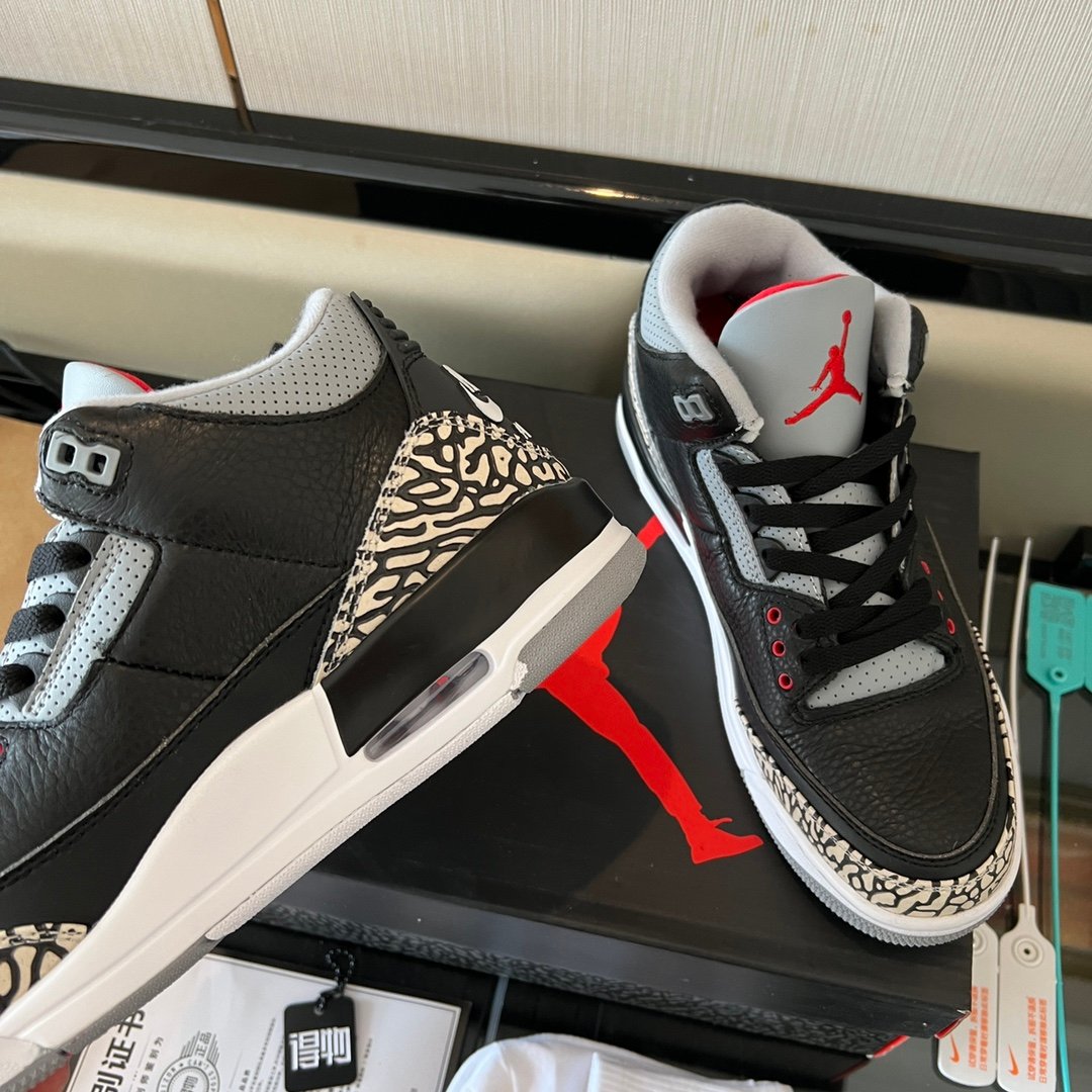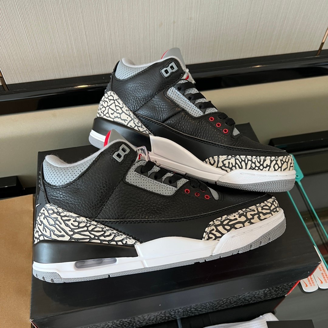 The Air Jordan 3 black cement brings back a legendary look with premium craftsmanship. This pair is about heritage and quality.