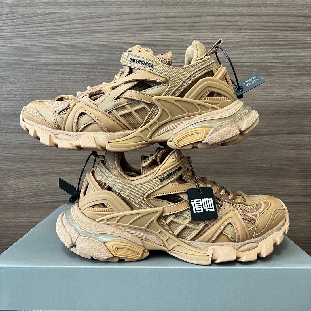 The neutral Tan/Beige colorway offers a sophisticated alternative to classic black or white. These sneakers pair effortlessly with technical cargos, oversized streetwear hoodies, or even tailored trousers for a high-low fashion statement. Whether you are navigating urban landscapes or attending a fashion event, the Track sneaker delivers unmatched prestige.