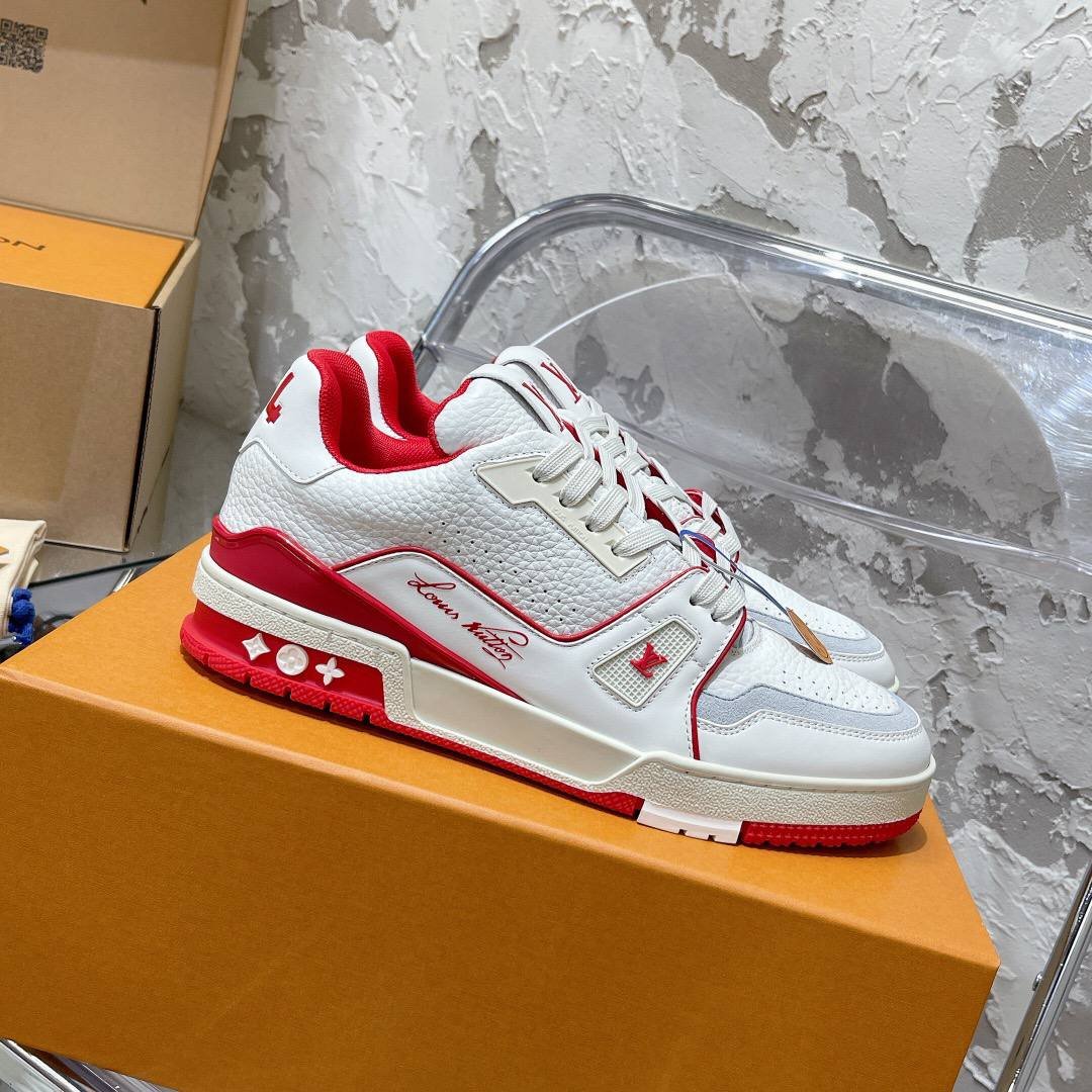 Iconic Design: The LV Trainer Sneaker in White & Red